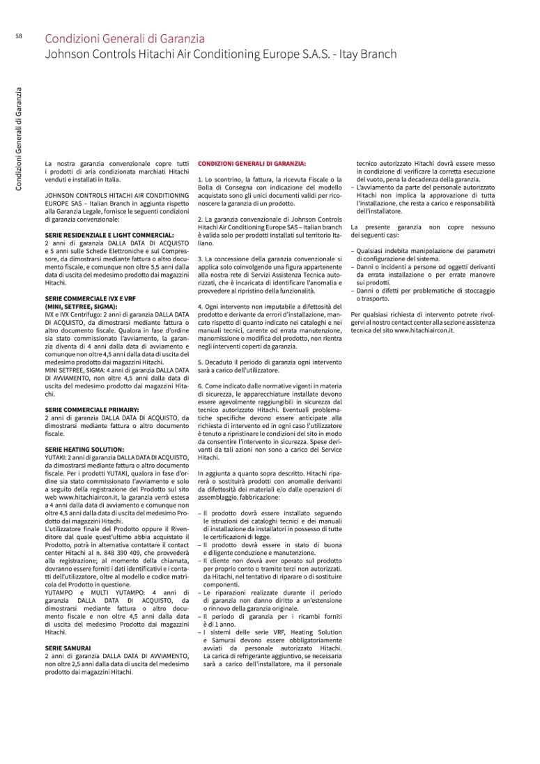 web www.hitachiaircon.it, la garanzia verrà estesa