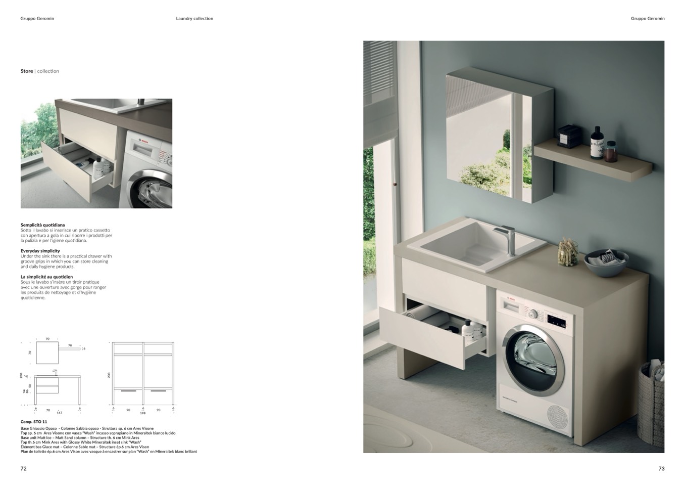 Top sp. 6 cm Ares Visone con vasca “Wash” incasso soprapiano in Mineraltek bianco lucido