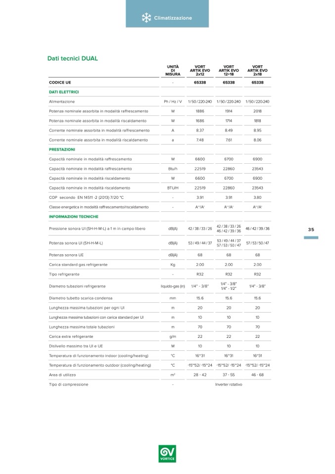 COP secondo EN 14511 -2 (2013) 7/20 °C