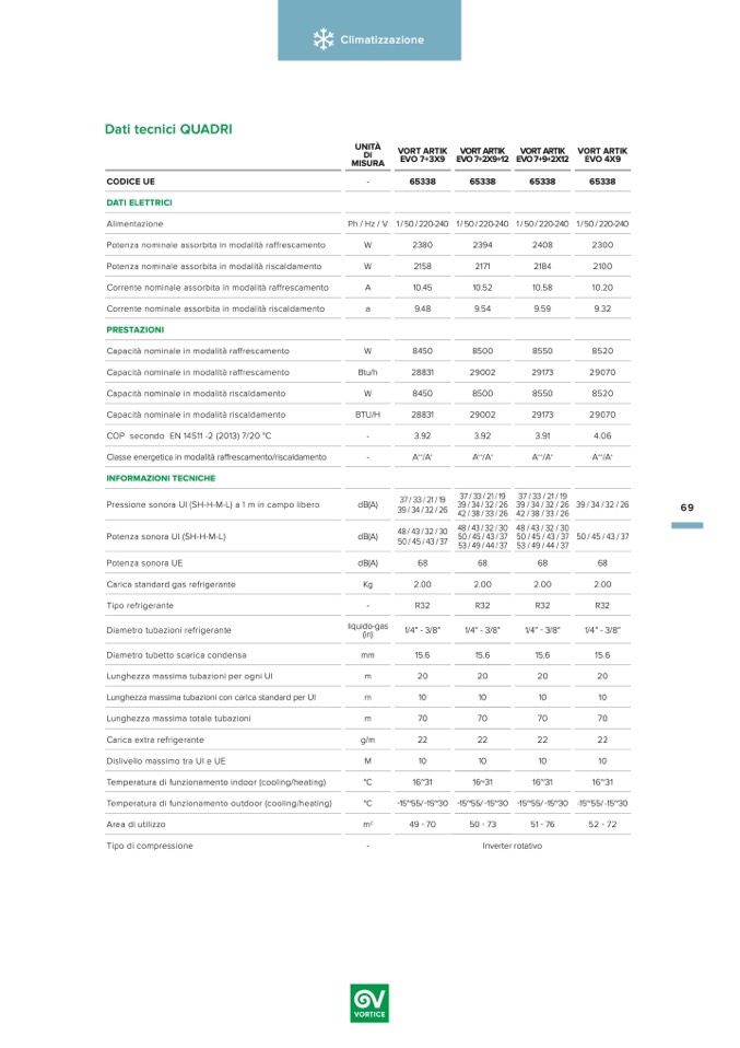 Classe energetica in modalità raffrescamento/riscaldamento