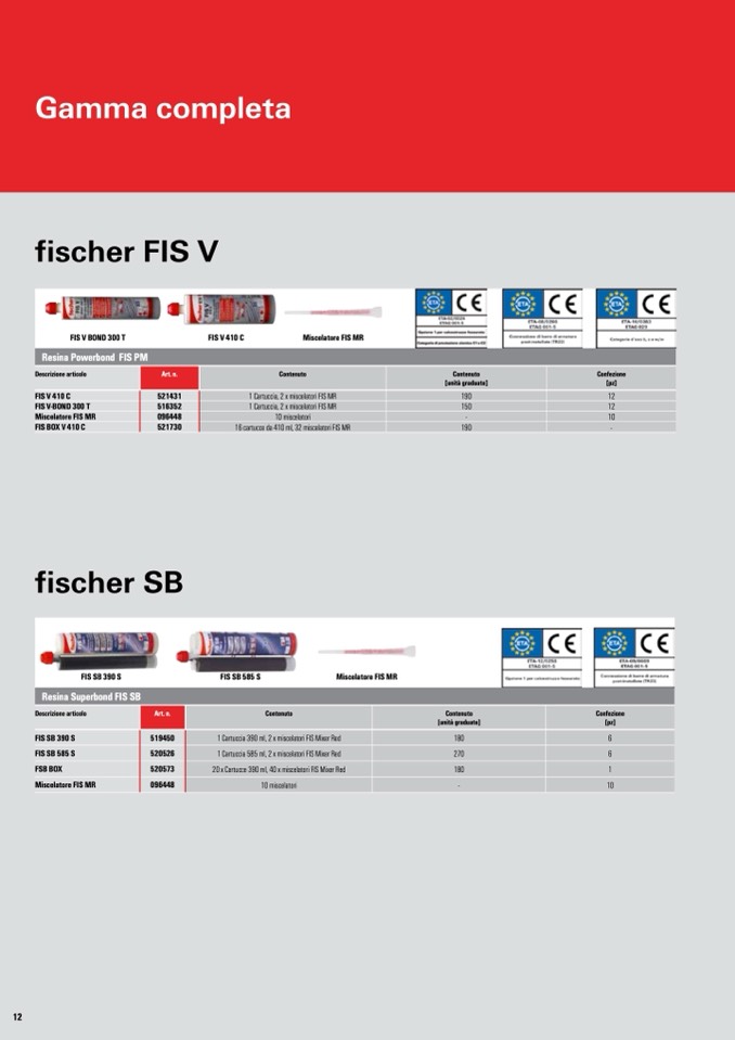 20 x Cartucce 390 ml, 40 x miscelatori FIS Mixer Red