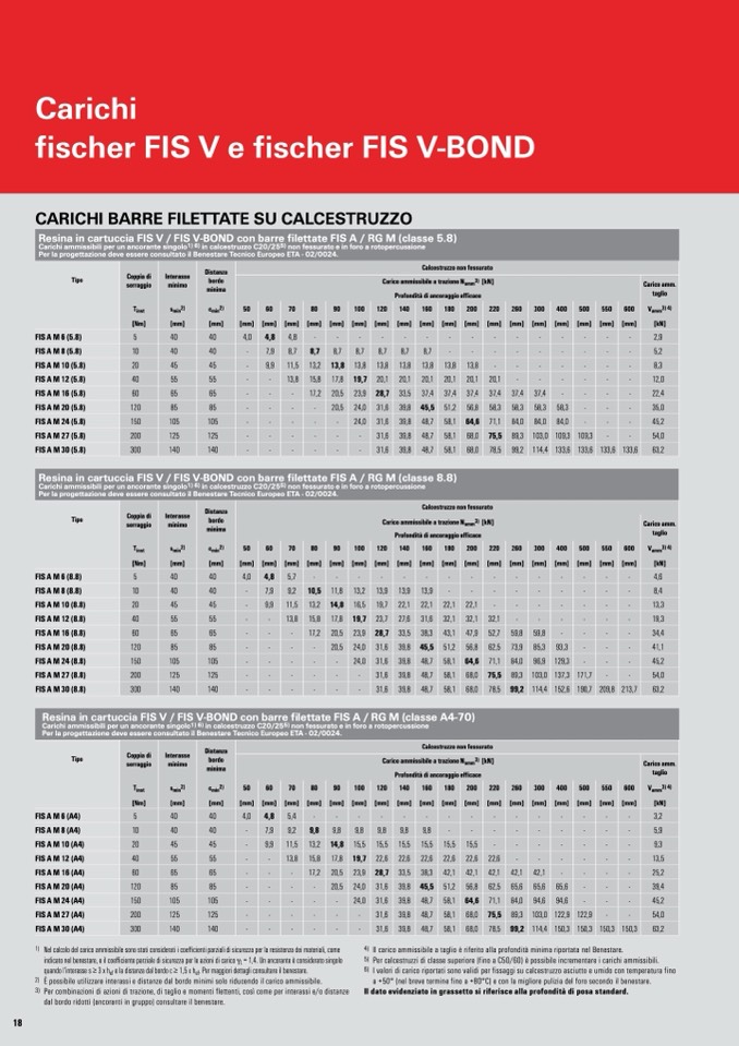 Resina in cartuccia FIS V / FIS V-BOND con barre filettate FIS A / RG M (classe A4-70)