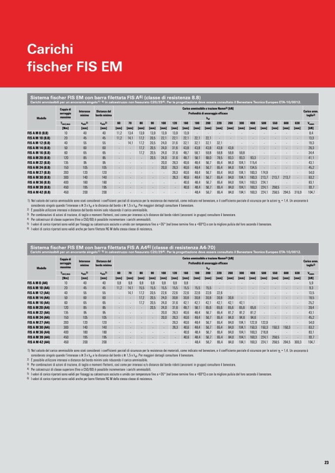 5) Ivaloridicaricoriportatisonovalidiperfissaggisucalcestruzzoasciuttoeumidocontemperaturafinoa+35°(nelbreveterminefinoa+60°C)econlamigliorepuliziadelforosecondoilbenestare.