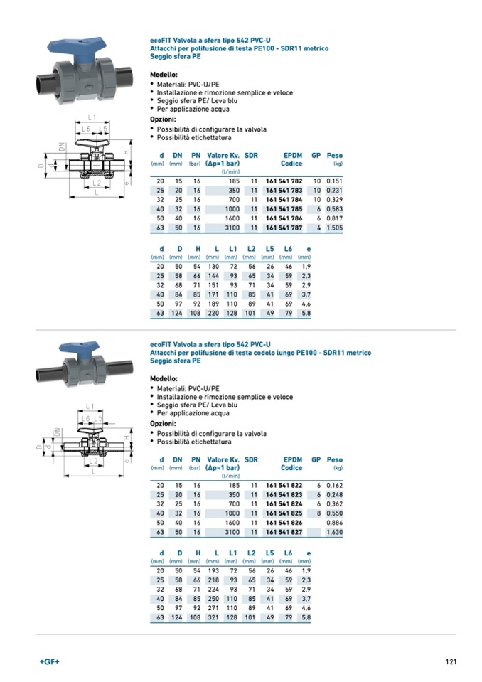ecoFIT Valvola a sfera tipo 542 PVC-U