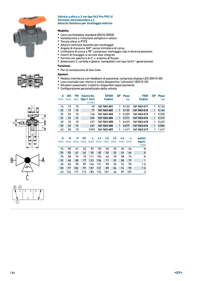 Valvola a sfera a 3 vie tipo 543 Pro PVC-U