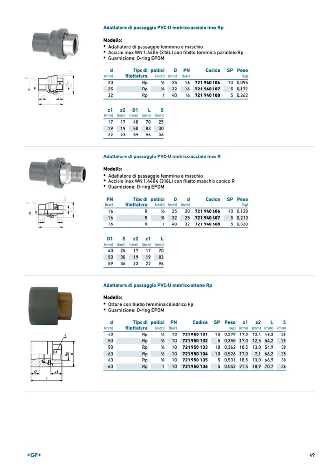 Adattatore di passaggio PVC-U metrico acciaio inox R