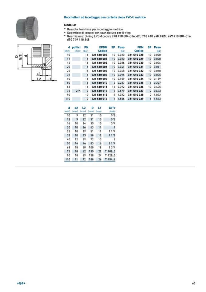 Guarnizione: O-ring EPDM codice 748 410 004-016; d90 748 410 248; FKM: 749 410 004-016;