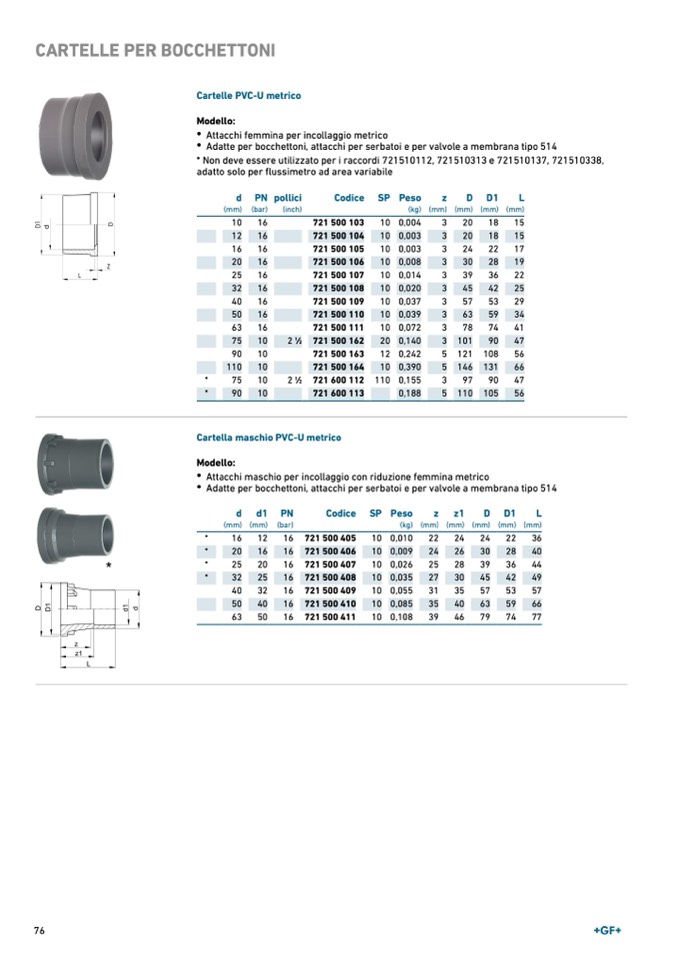 Adatte per bocchettoni, attacchi per serbatoi e per valvole a membrana tipo 514