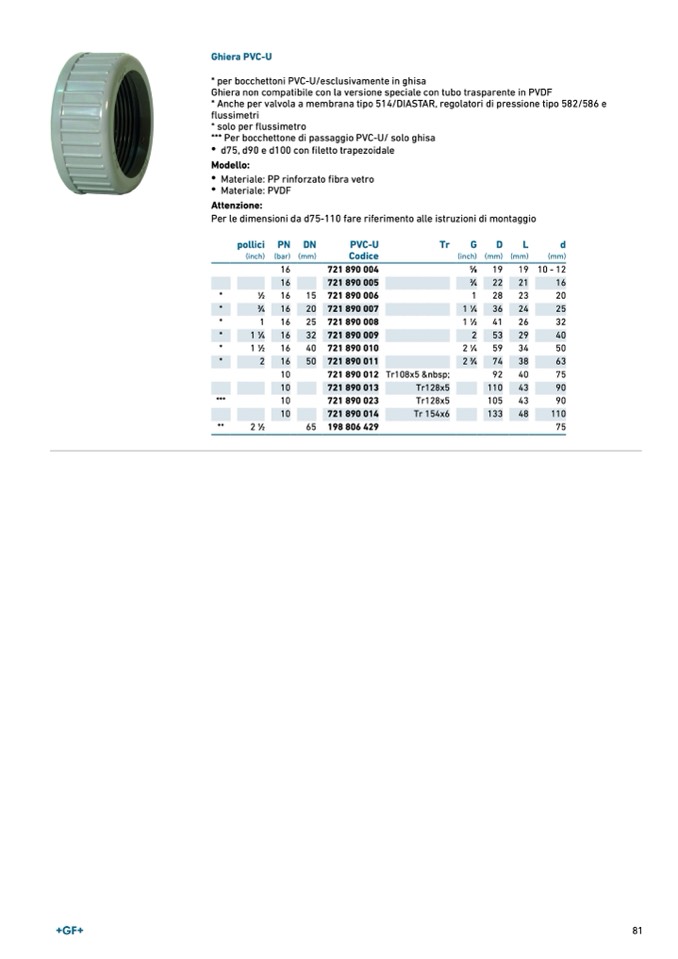 Ghiera non compatibile con la versione speciale con tubo trasparente in PVDF