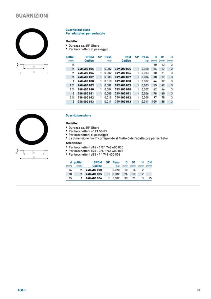 La dimensione "inch" corrisponde al filetto G dell'adattatore per serbatoi