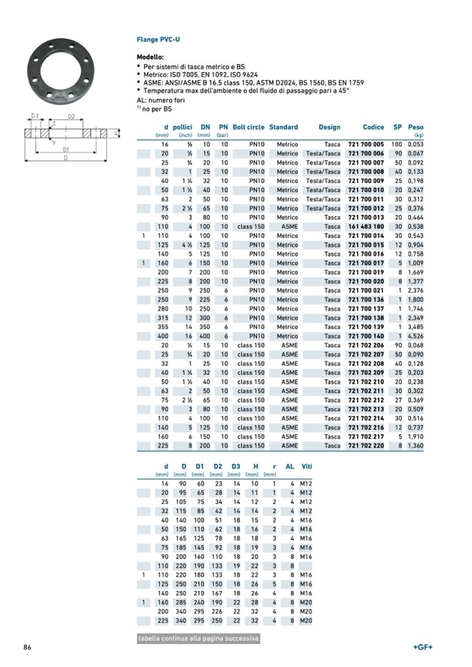 Metrico: ISO 7005, EN 1092, ISO 9624