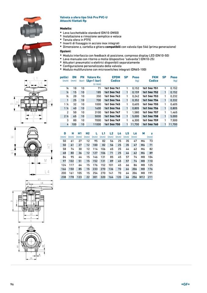 Valvola a sfera tipo 546 Pro PVC-U