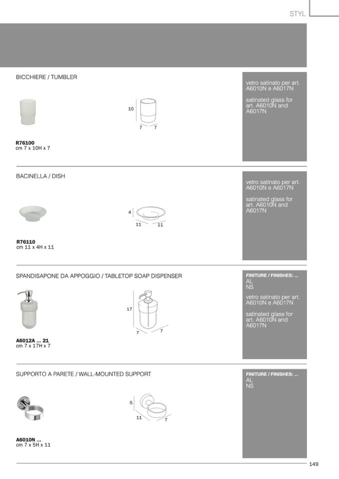 FINITURE / FINISHES: ...