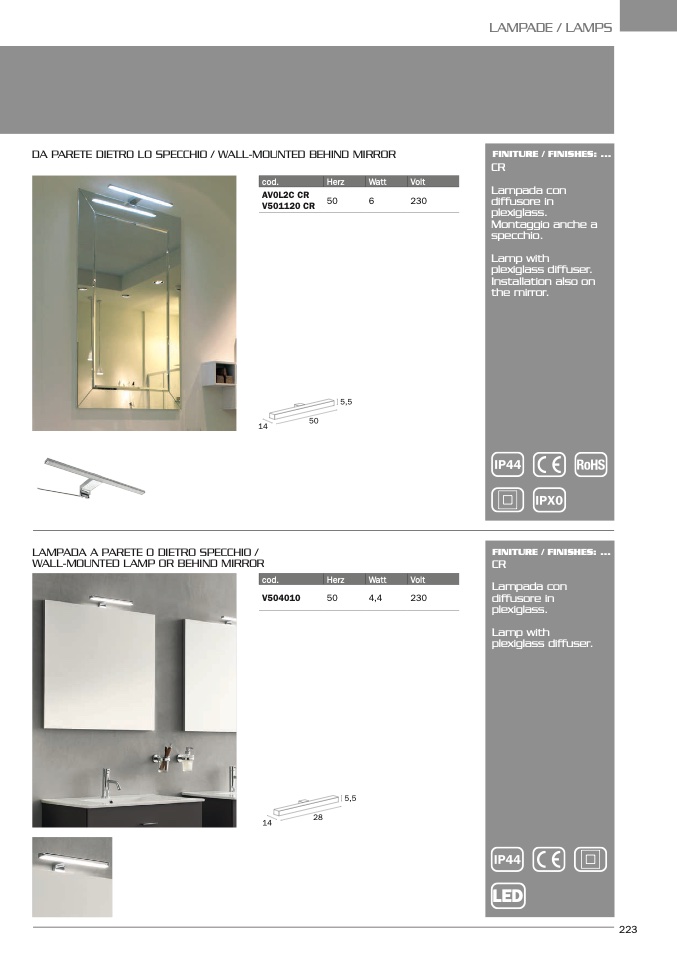 LAMPADA A PARETE O DIETRO SPECCHIO /