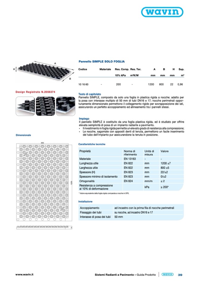 Il pannello SIMPLE è costituito da una foglia plastica rigida, ed è studiato per offrire
