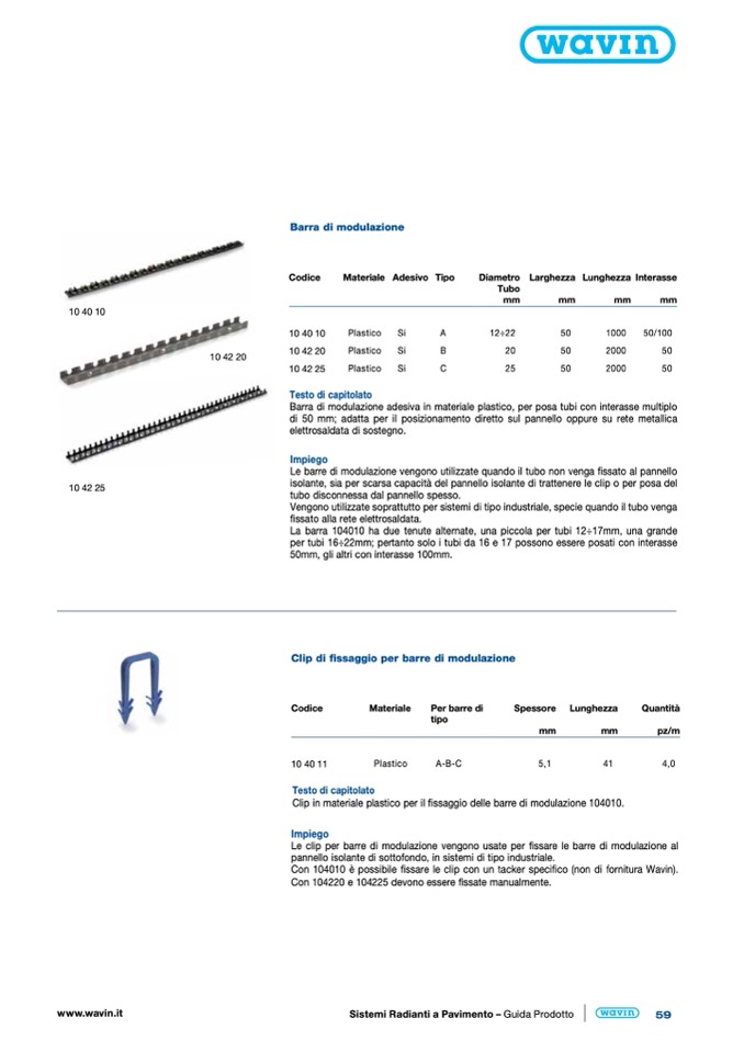 Con 104010 è possibile fissare le clip con un tacker specifico (non di fornitura Wavin).
