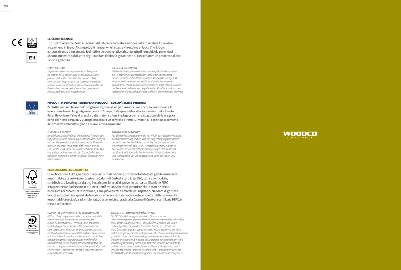 Tutti i parquet rispondono ai requisiti dettati dalla normativa europea sulla marcatura CE relativa