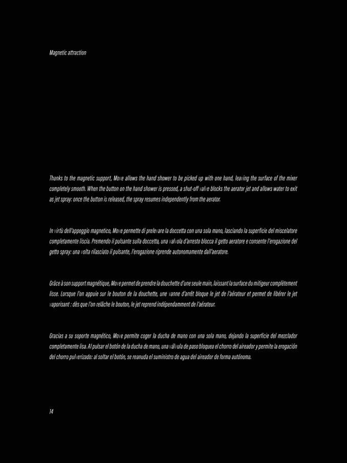 In virtù dell’appoggio magnetico, Move permette di prelevare la doccetta con una sola mano, lasciando la superficie del miscelatore