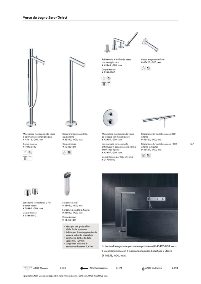 I prodotti AXOR Uno sono disponibili nella finitura Cromo -000 e in AXOR FinishPlus -xxx.