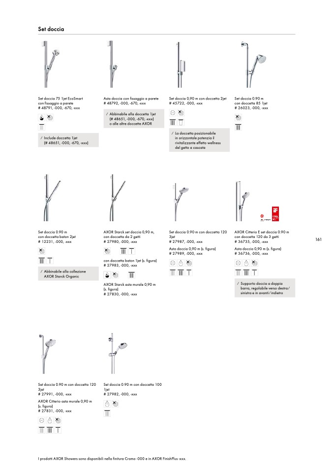 I prodotti AXOR Showers sono disponibili nella finitura Cromo -000 e in AXOR FinishPlus -xxx.