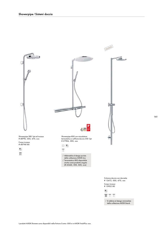 I prodotti AXOR Showers sono disponibili nella finitura Cromo -000 e in AXOR FinishPlus -xxx.