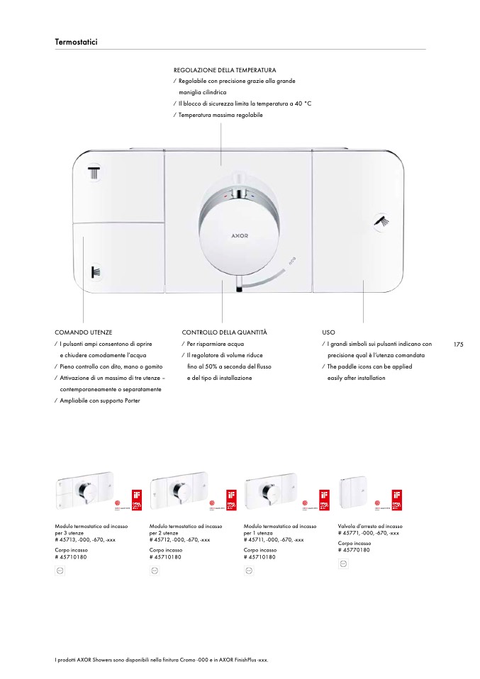 I prodotti AXOR Showers sono disponibili nella finitura Cromo -000 e in AXOR FinishPlus -xxx.