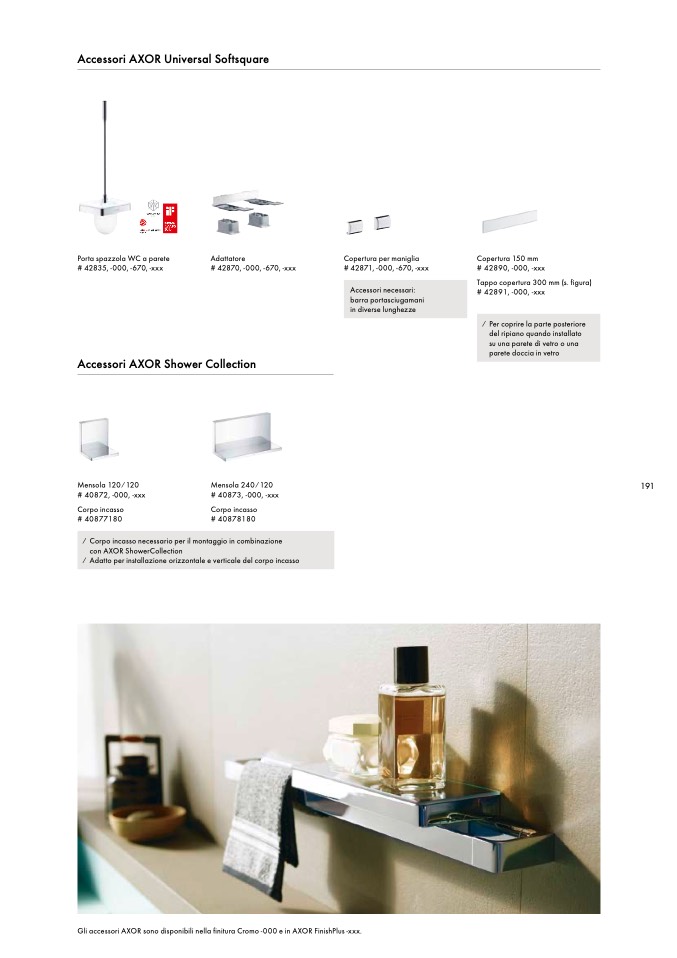 Gli accessori AXOR sono disponibili nella finitura Cromo -000 e in AXOR FinishPlus -xxx.
