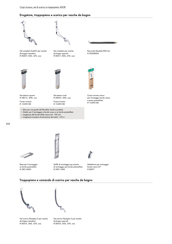 Corpi incasso, set di scarico e troppopieno AXOR