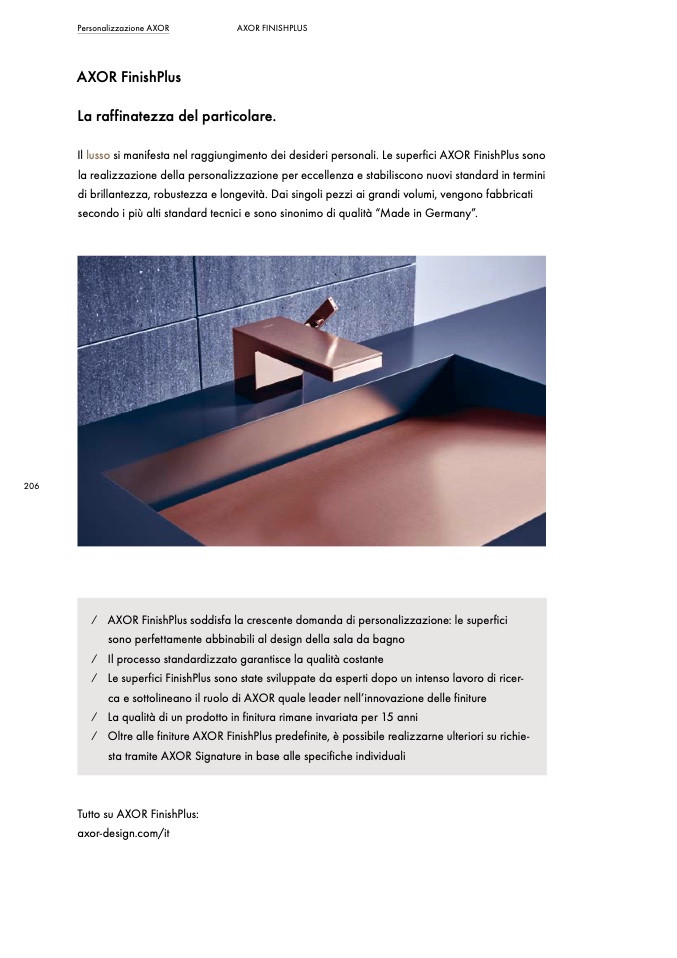 ⁄ Oltre alle finiture AXOR FinishPlus predefinite, è possibile realizzarne ulteriori su richie-