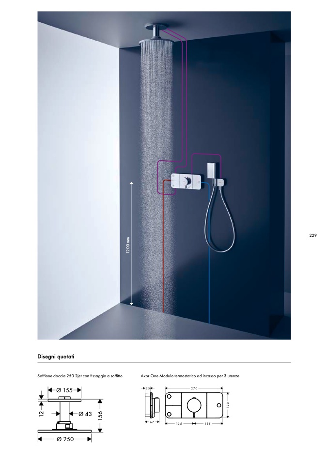 Soffione doccia 250 2jet con fissaggio a soffitto