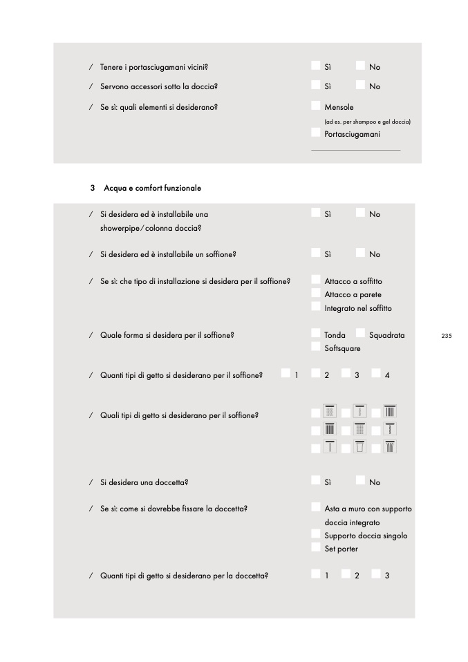 ⁄ Se sì: che tipo di installazione si desidera per il soffione?