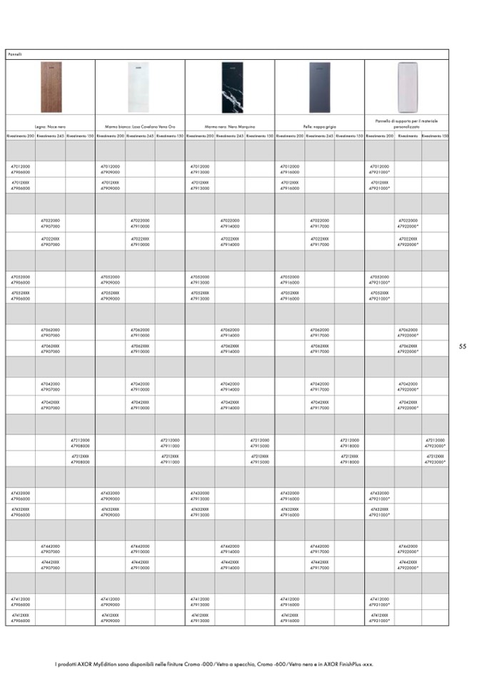 I prodotti AXOR MyEdition sono disponibili nelle finiture Cromo -000 ⁄ Vetro a specchio, Cromo -600 ⁄ Vetro nero e in AXOR FinishPlus -xxx.