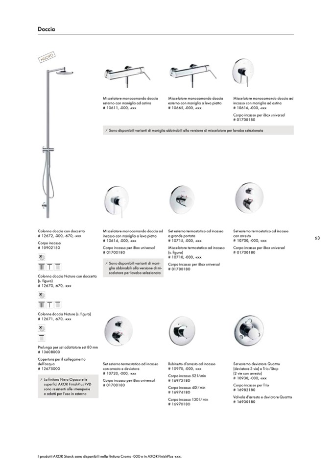 I prodotti AXOR Starck sono disponibili nella finitura Cromo -000 e in AXOR FinishPlus -xxx.