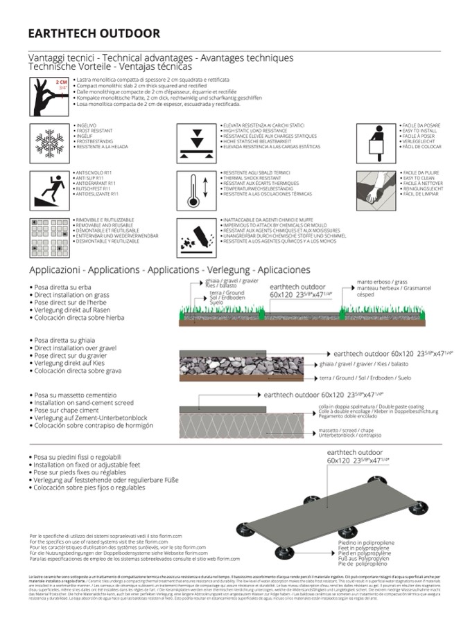 d’eau superficielles, même si les dalles ont été installées dans les règles de l’art. / Die Keramikplatten werden einer thermischen Verdichtung unterzogen, welche die Widerstandsfähigkeit und Langlebigkeit sichert. Die extrem niedrige Wasseraufnahme macht