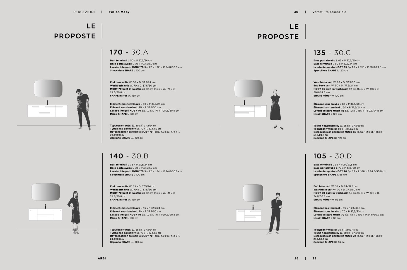MOBY 85 built-in washbasin 1.2 cm thick x W. 136 x D.