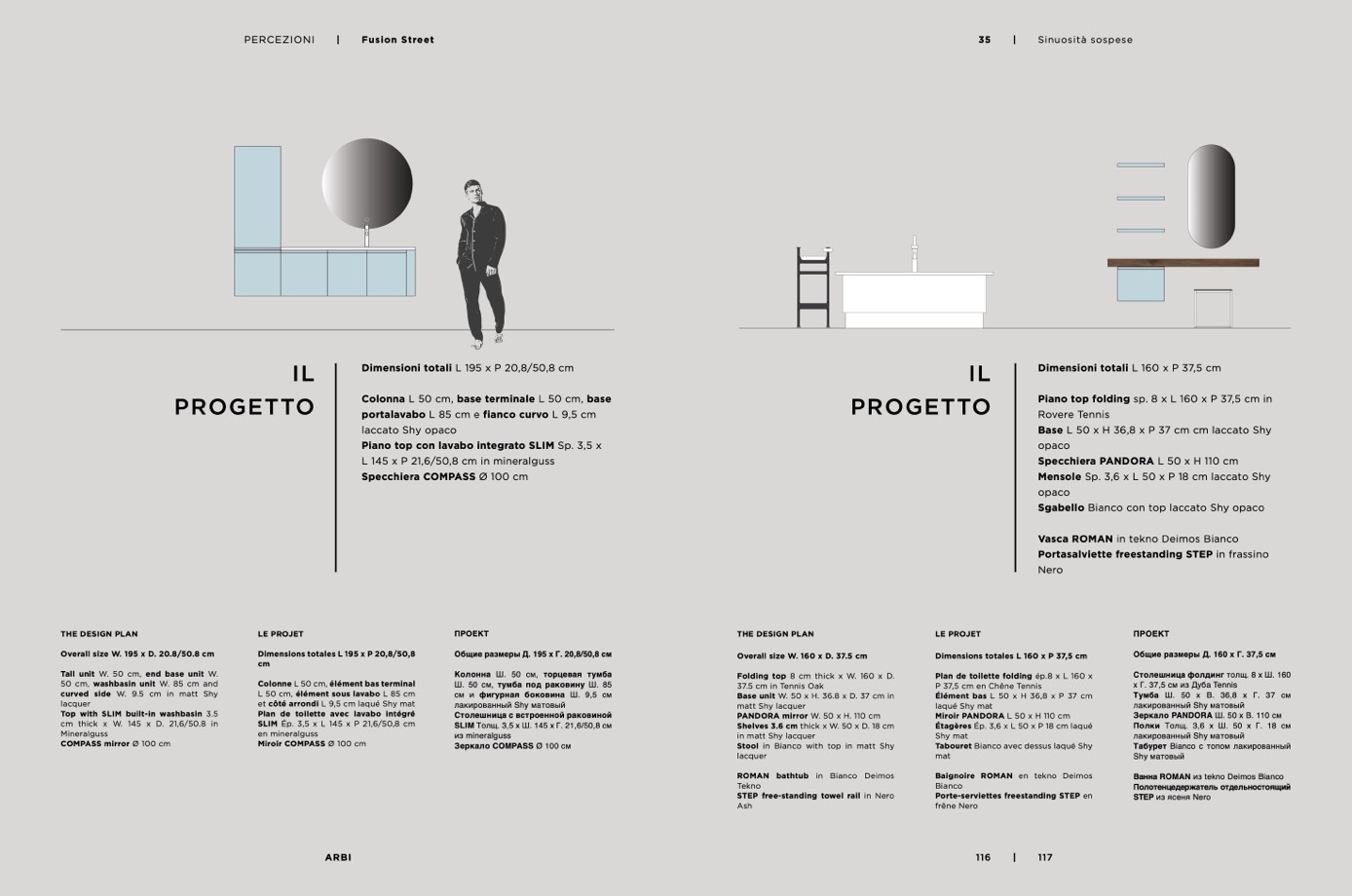 portalavabo L 85 cm e fianco curvo L 9,5 cm