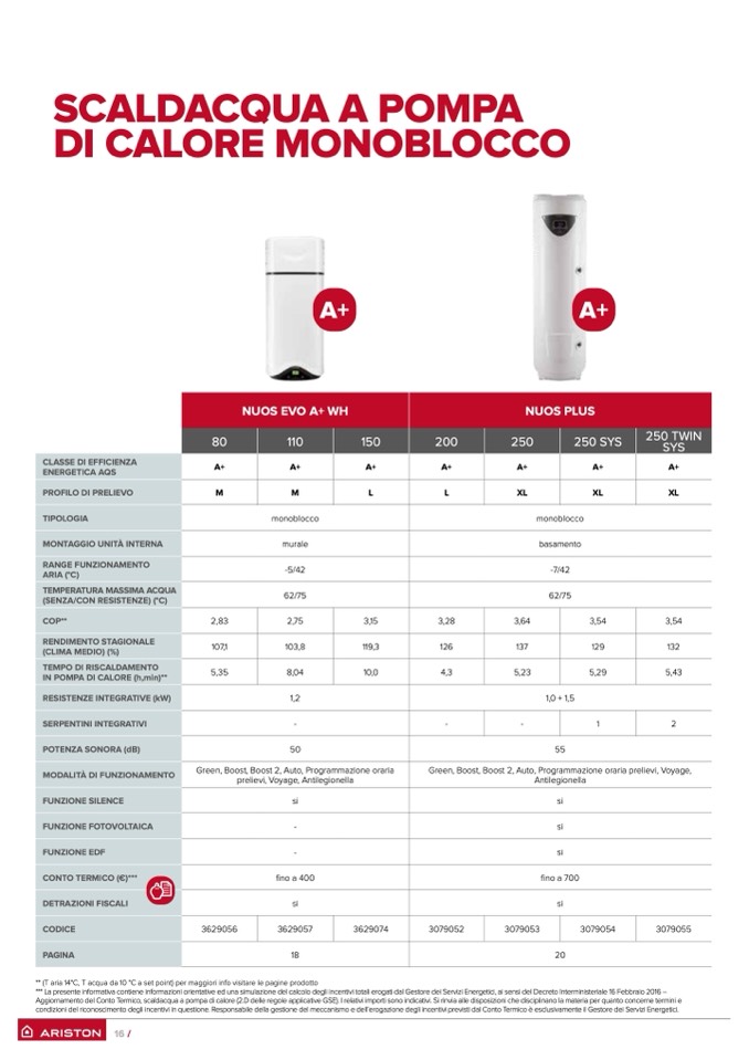 ** (T aria 14°C, T acqua da 10 °C a set point) per maggiori info visitare le pagine prodotto