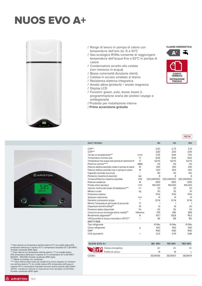 87%, temperatura dell’acqua in ingresso 10 °C e temperatura 53 °C (EN 16147 /