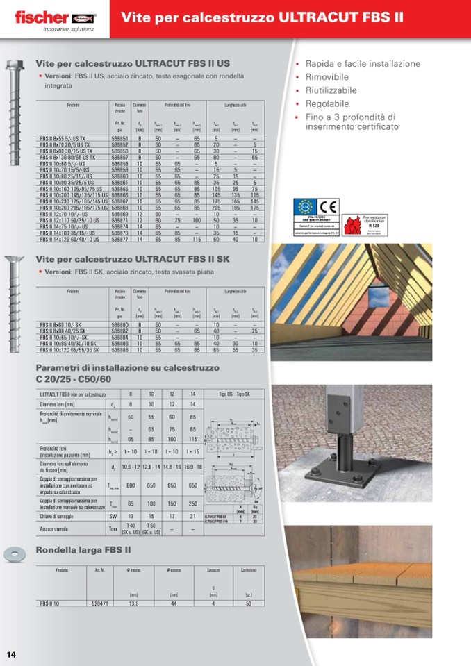 Versioni: FBS II US, acciaio zincato, testa esagonale con rondella