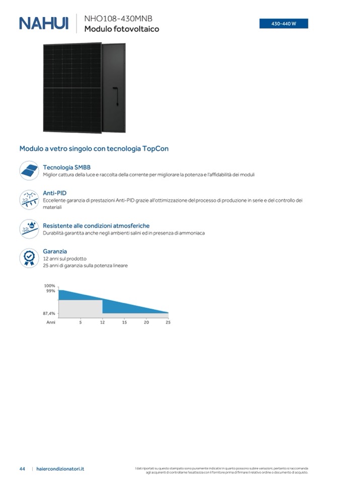 25 anni di garanzia sulla potenza lineare