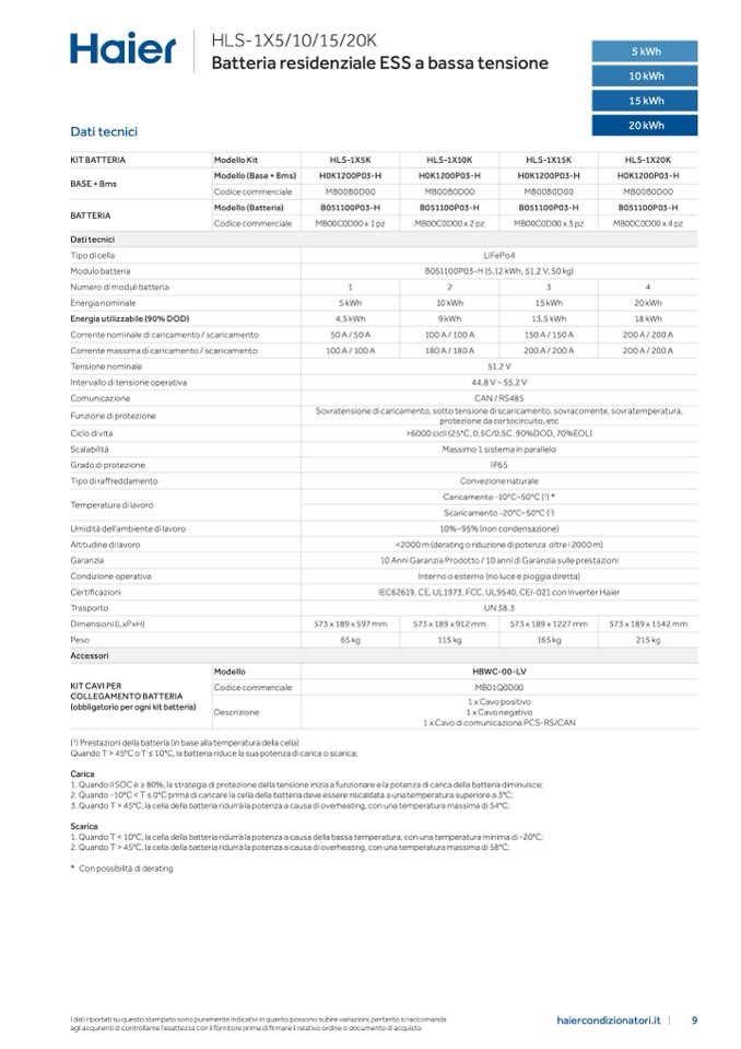 IEC62619, CE, UL1973, FCC, UL9540, CEI-021 con Inverter Haier