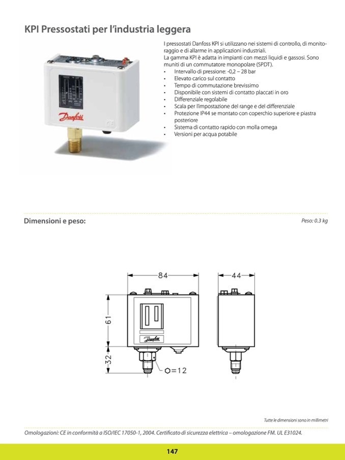 I pressostati Danfoss KPI si utilizzano nei sistemi di controllo, di monito-