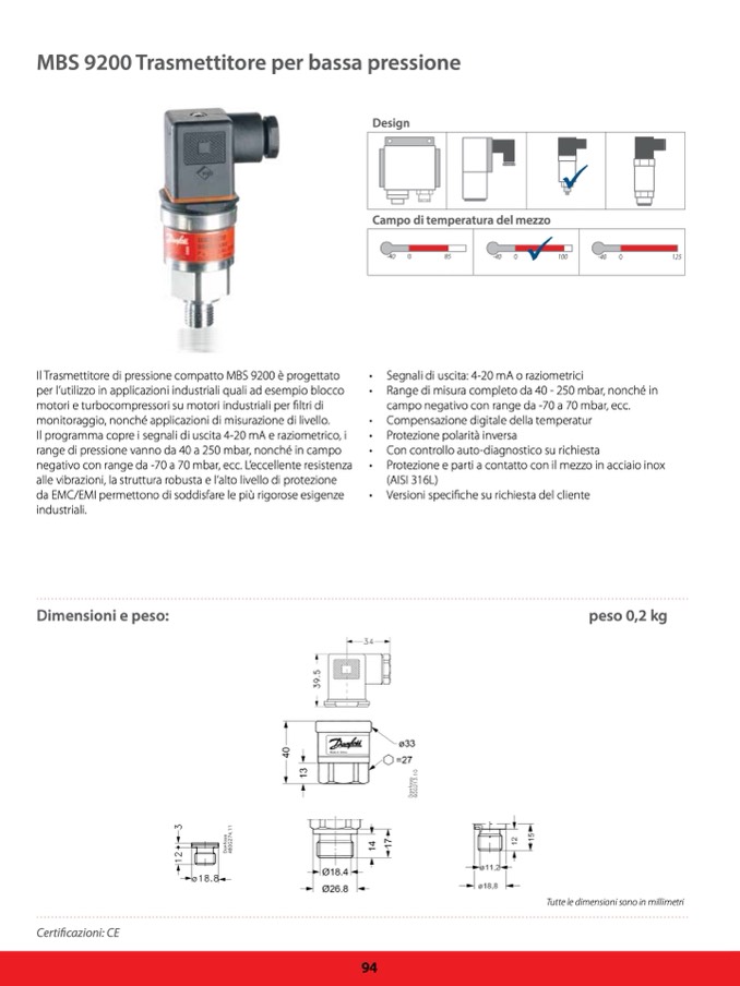Il Trasmettitore di pressione compatto MBS 9200 è progettato