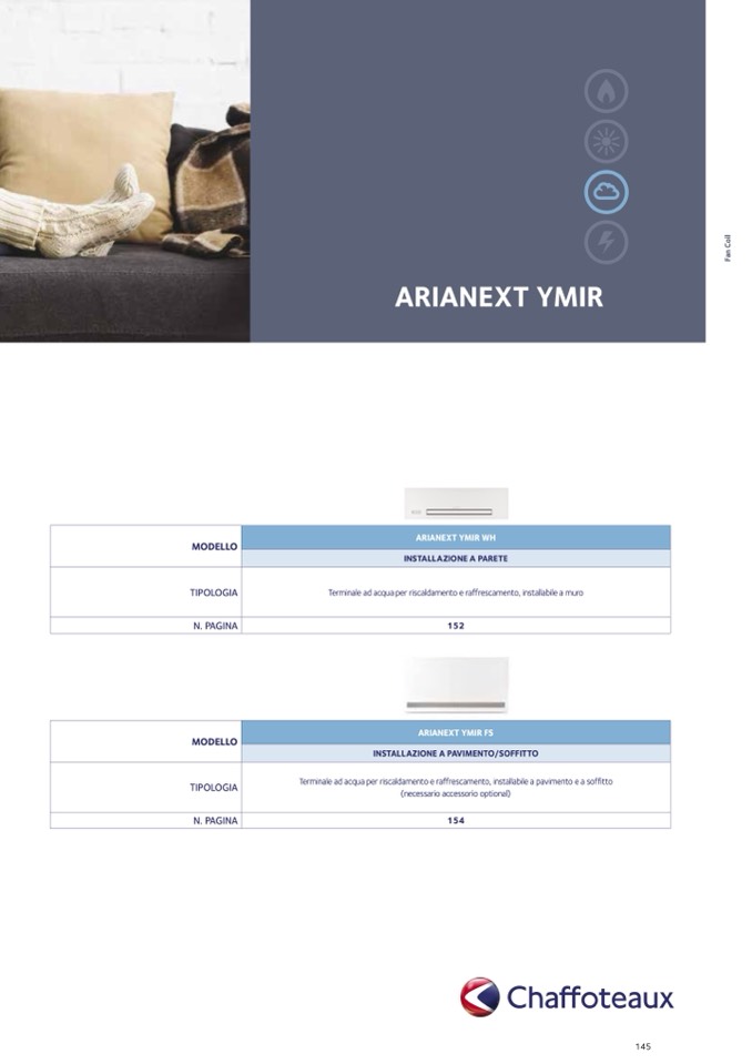 Terminale ad acqua per riscaldamento e raffrescamento, installabile a pavimento e a soffitto