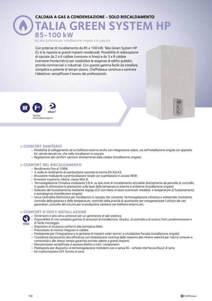 • Disponibilità di una completa gamma di accessori di installazione, idraulici, di controllo e di scarico fumi; predimensionati e