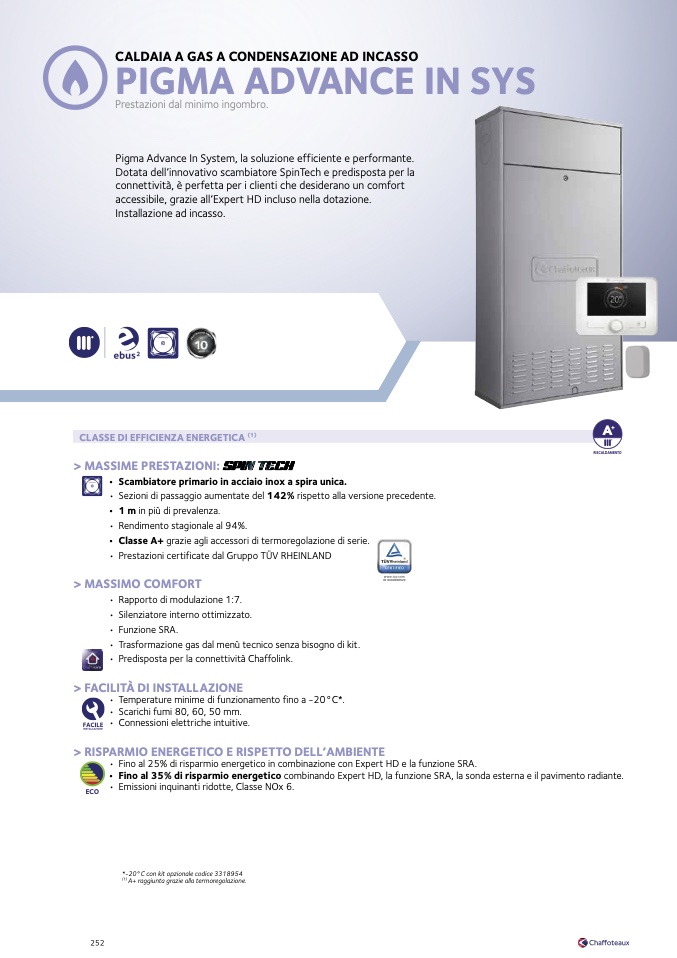• Fino al 35% di risparmio energetico combinando Expert HD, la funzione SRA, la sonda esterna e il pavimento radiante.