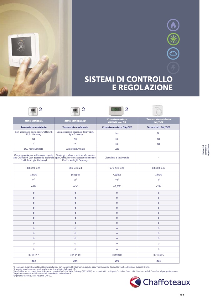 Compatibile ma non consigliato. Utilizzare accessorio ChaffoLink Light Gateway (3319090) per connettività con Expert Control (o Expert HD) di serie e modelli Zone Control per gestione zone.