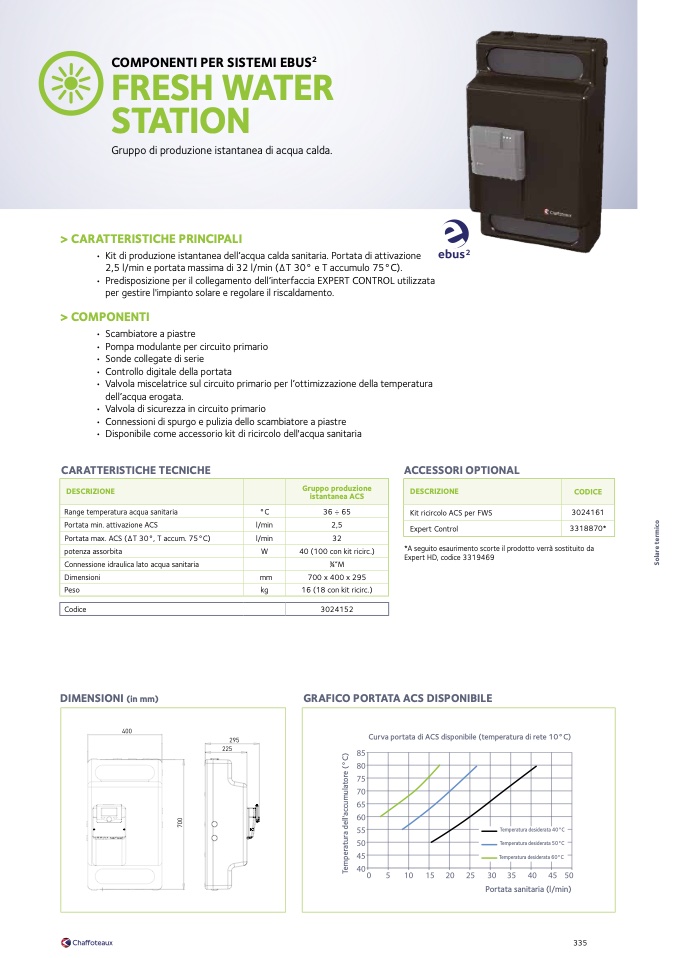 2,5 l/min e portata massima di 32 l/min (ΔT 30° e T accumulo 75°C).