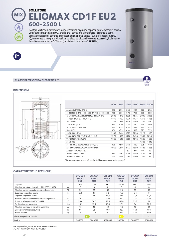 lt), termometro integrato, kit resistenza elettrica disponibile come accessorio, isolamento