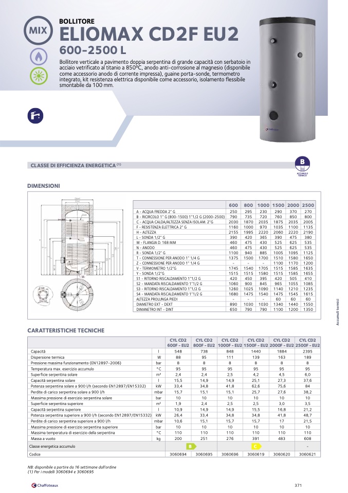 Potenza serpentina superiore a 900 l/h (secondo EN12897/EN15332)